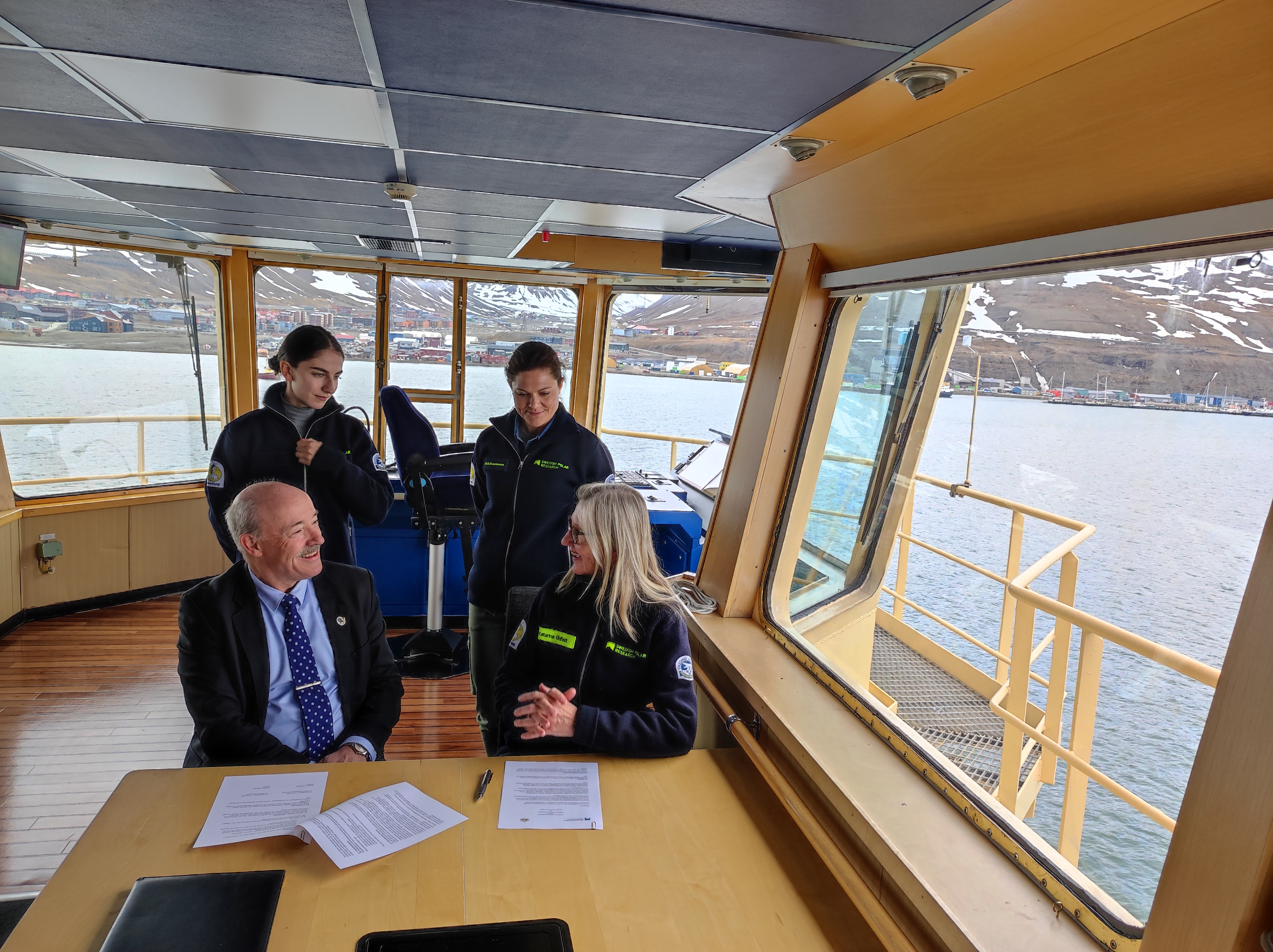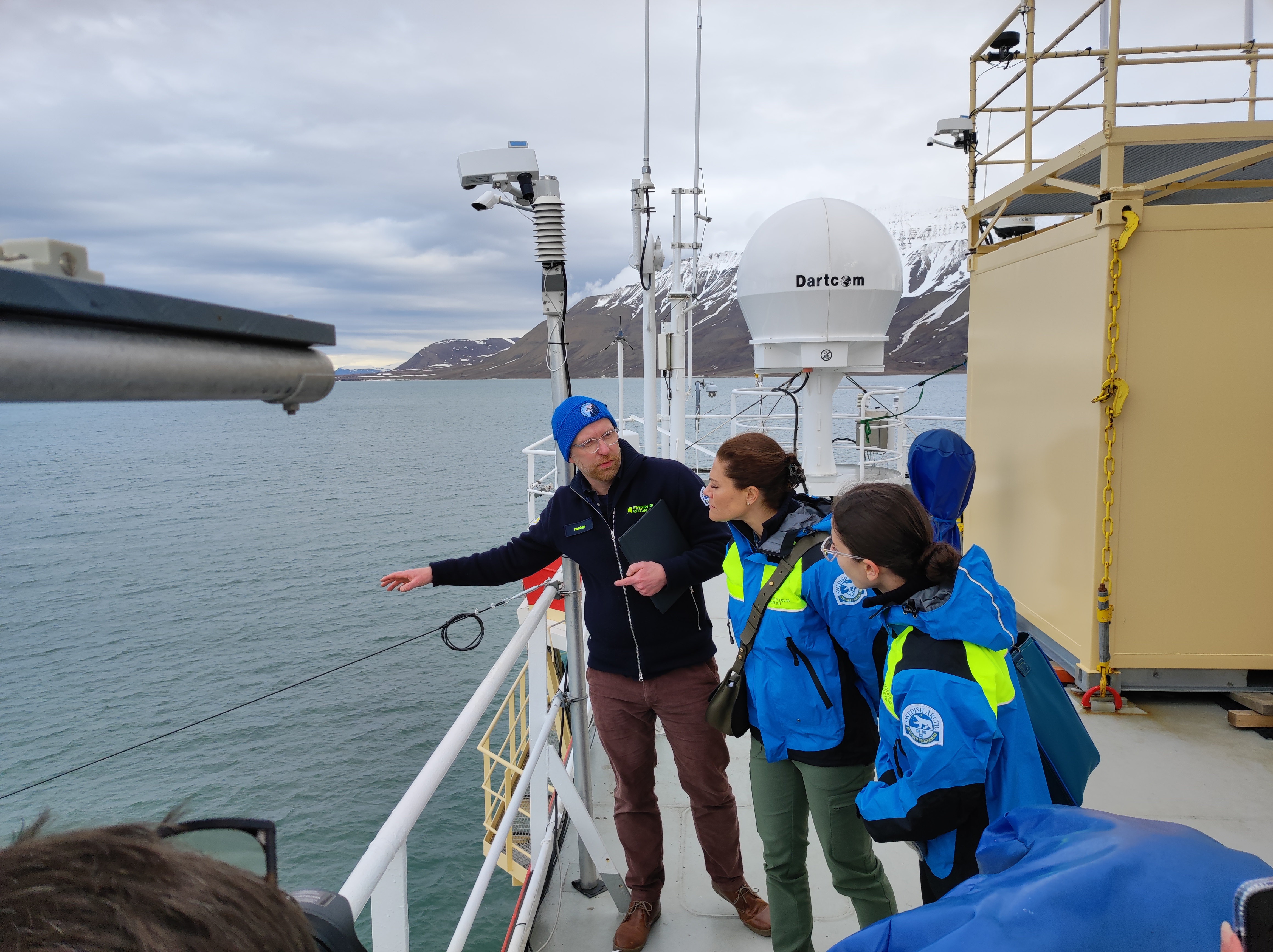 Ombord på Oden fick Kronprinsessan och statsrådet en inblick i den forskning som genomförts på ARTofMELT 2023, bland annat av professor Michael Tjernström vid Stockholms universitet som var Chief Scientist för expeditionen. Han berättade om de värdefulla data som kunnat samlats in, främst när det gäller att förstå vårens ankomst i Arktis och vad som påverkar smältningen. Co-Chief Scientist Paul Zieger, universitetslektor vid Stockholms universitet, visade olika mätinstrument som använts vid forskningen.