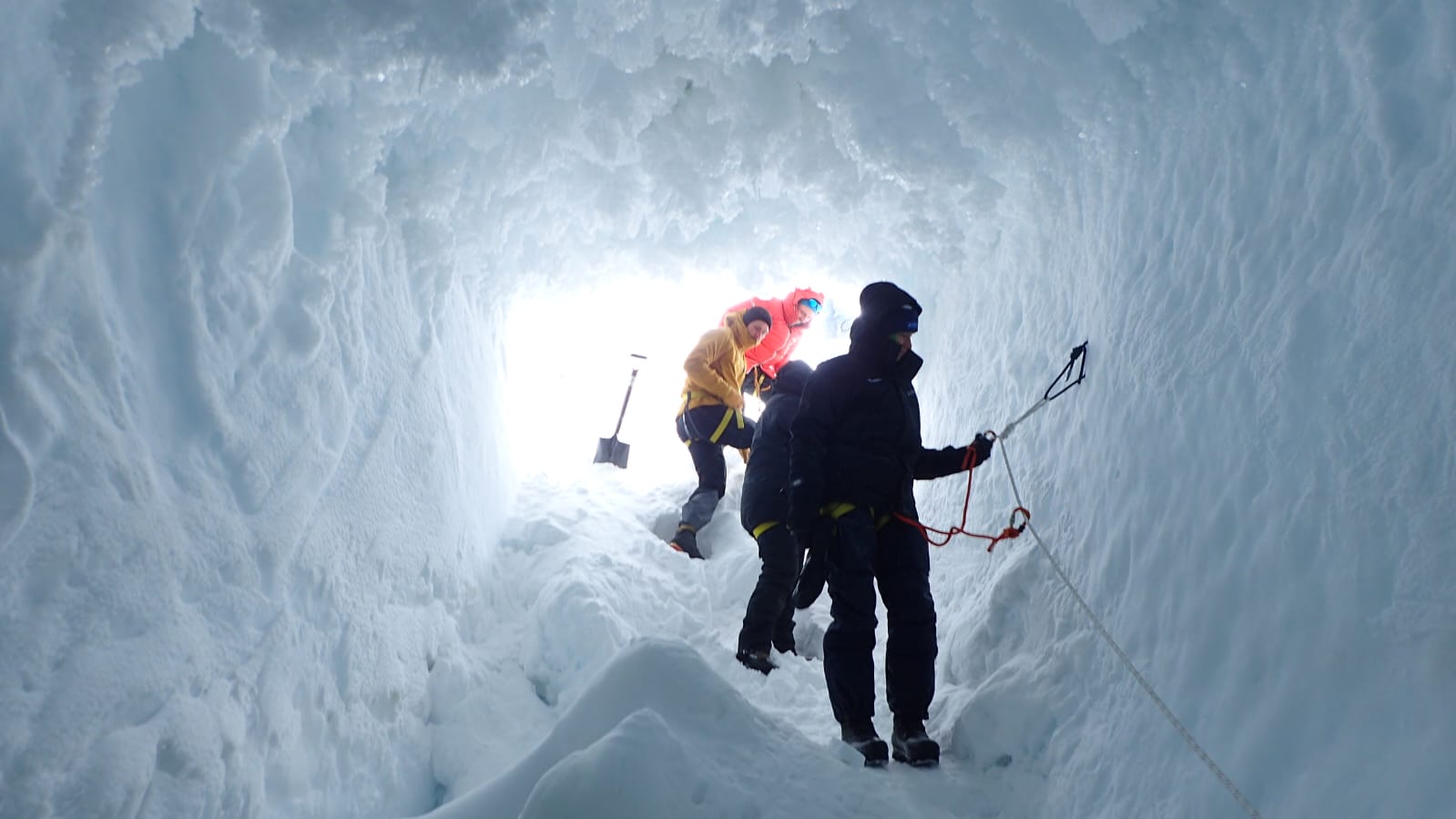 Äter gör vi i ett större kökstält. Vi har även gjort ett studiebesök i en glaciärspricka, det är sådant man fördriver tiden med i Antarktis.