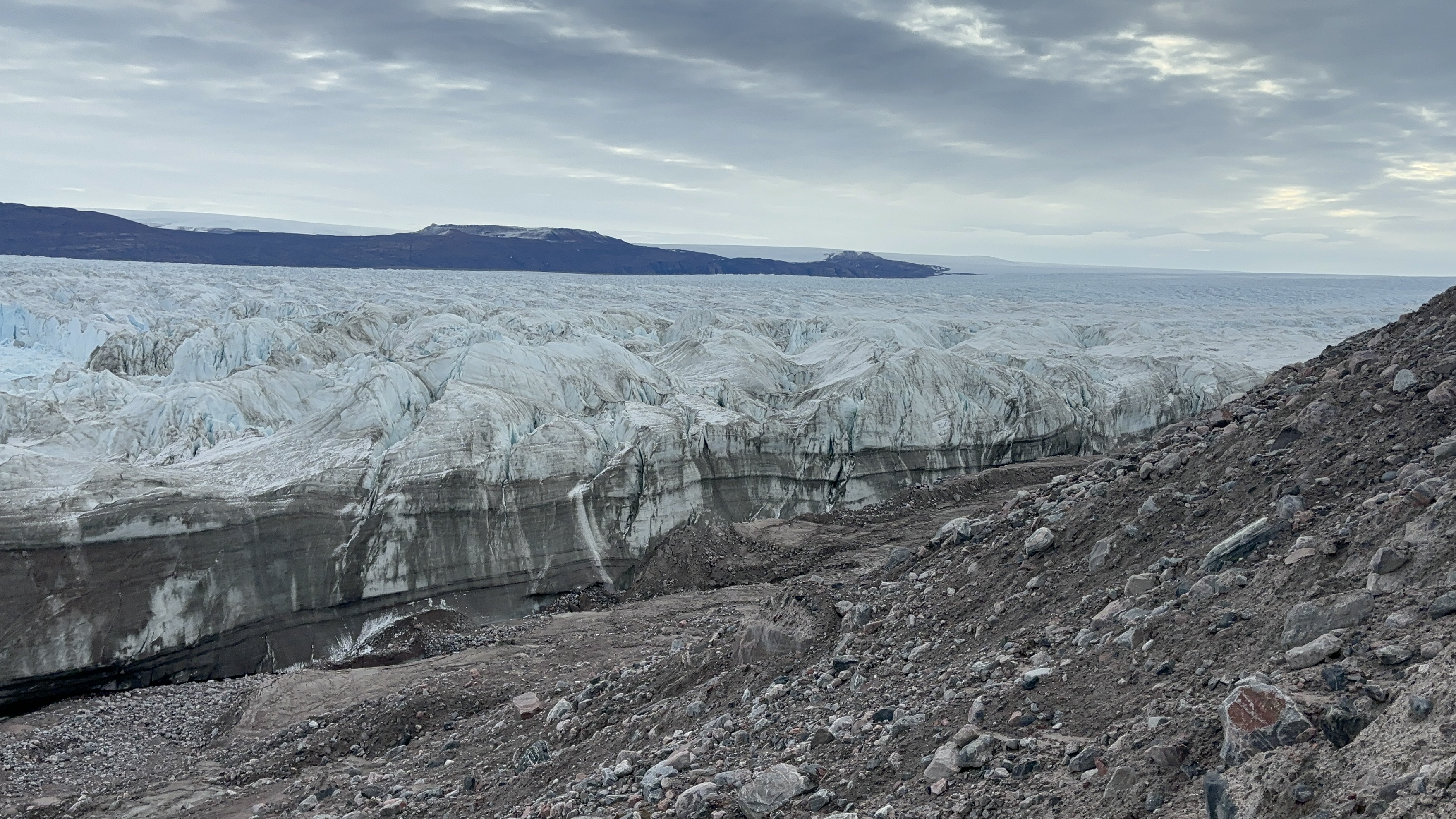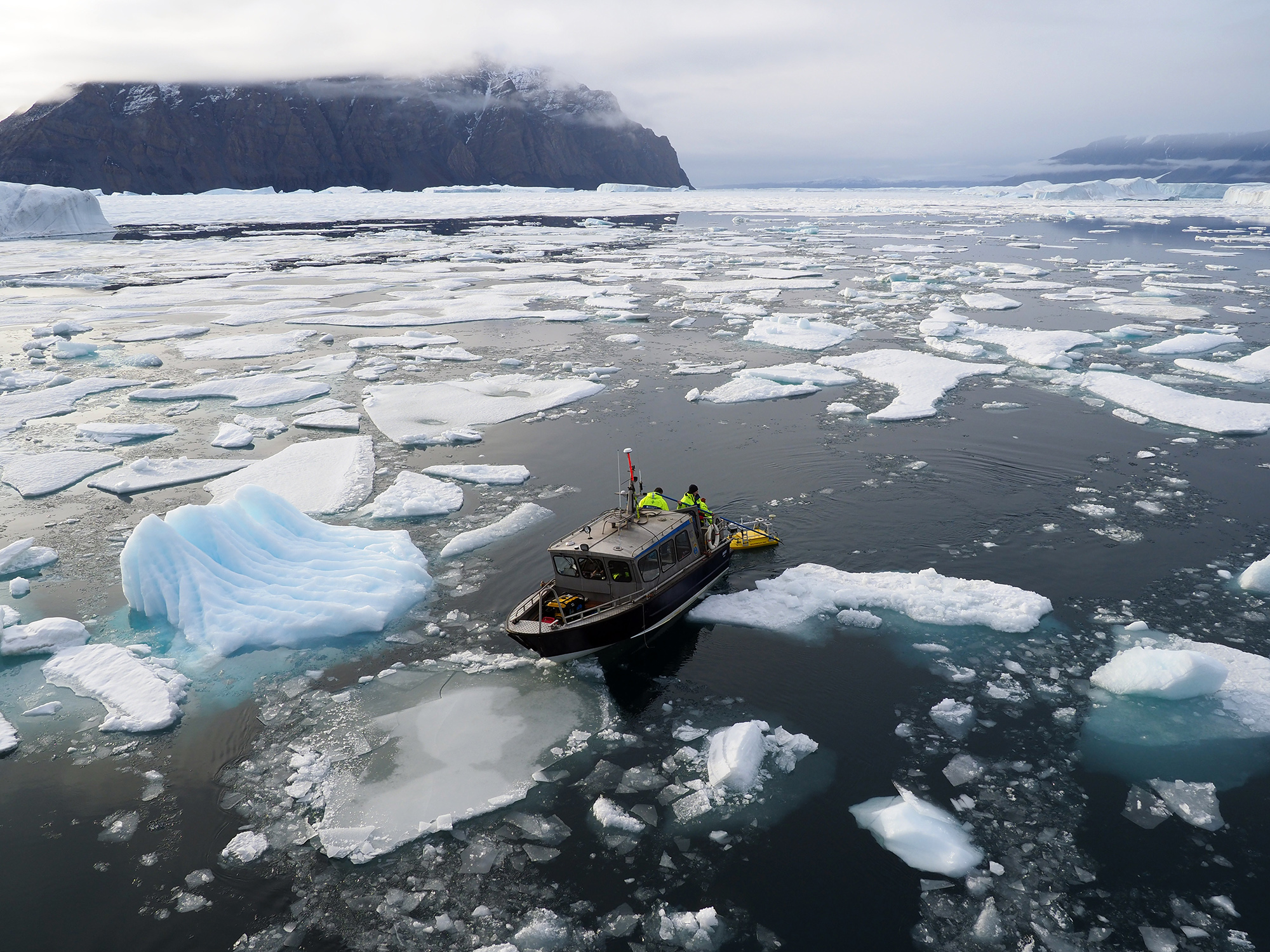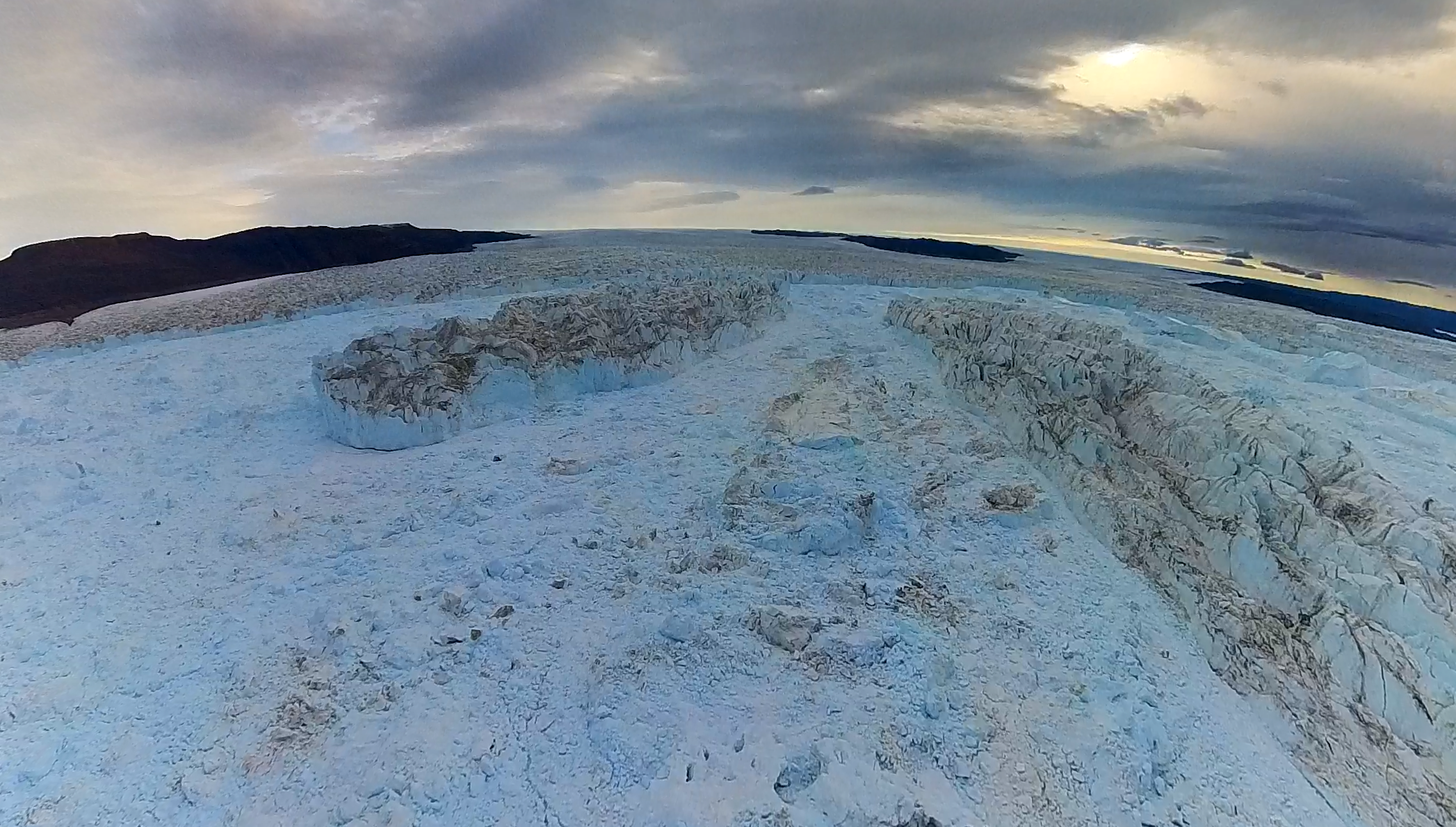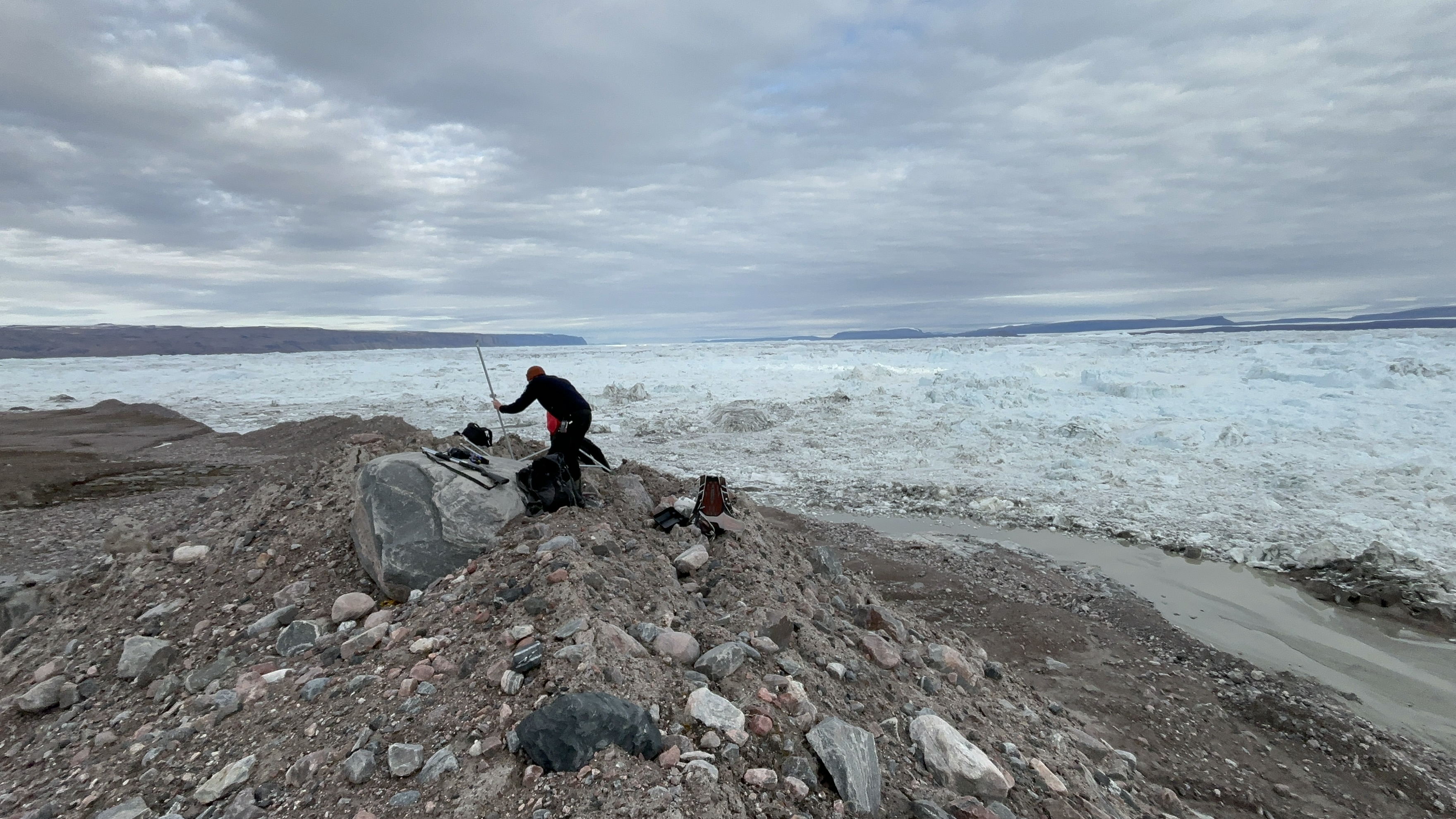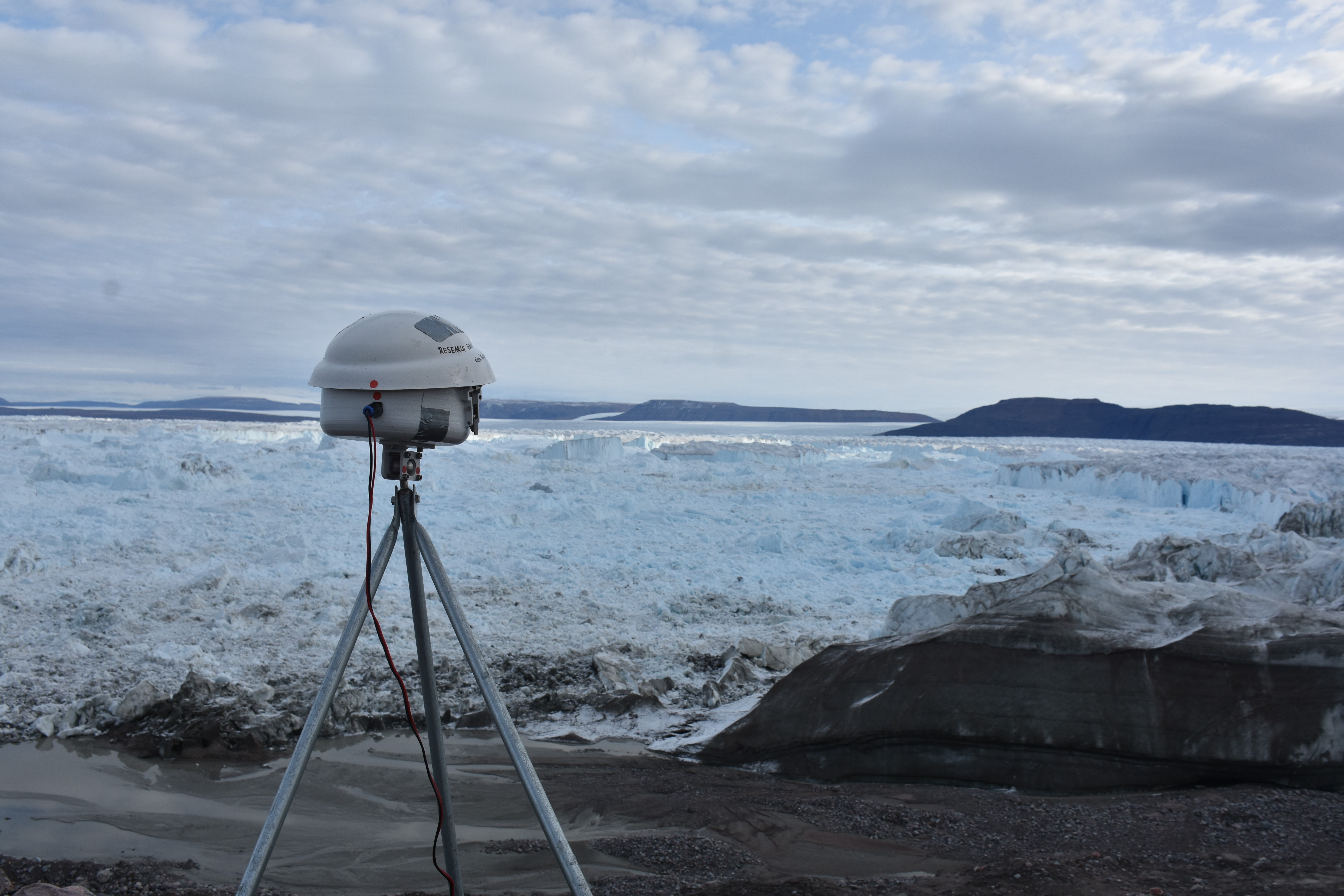 Forskarna Felicity Holmes och Jamie Barnett vid Stockholms universitet har satt upp time-lapse kameror för att följa och övervaka glaciärfrontens rörelser. Det är en mäktig glaciär som ligger längst in i Victoriafjorden som heter C.H. Ostenfeld-glaciären och som kalvat enorma mängder isberg ut i Victoriafjorden. Hela inre delen av fjorden är fylld med isberg och det är med stor försiktighet som I/B Oden rör sig i de yttre delarna av fjorden.