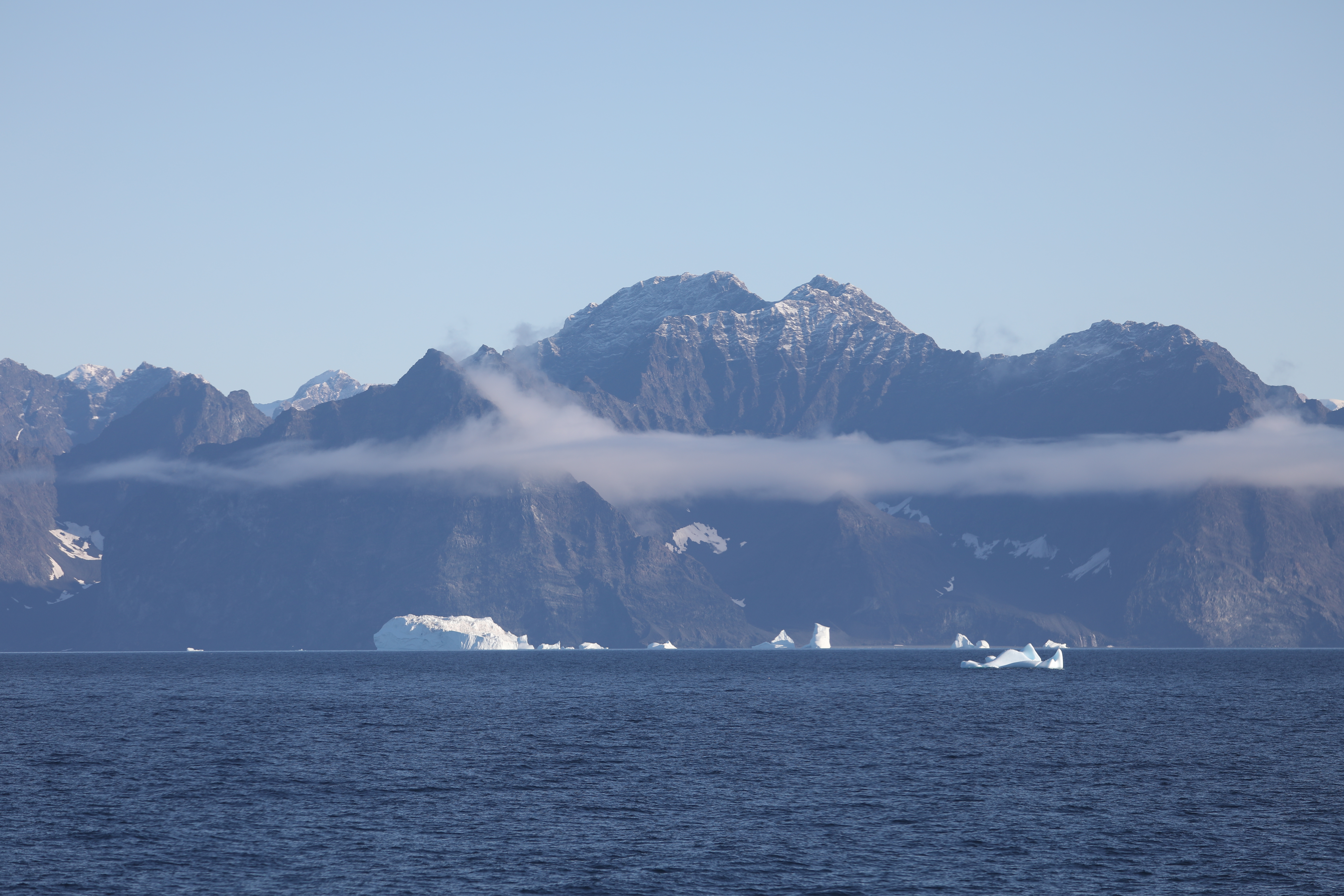 We woke up to a beautiful sunrise, with icebergs and mountains surrounding the ship. The chef had prepared eggs and sausages for breakfast and morale was high! We had reached the mouth of Kangerlussuaq Fjord, home to one of the largest and fastest moving glaciers in Greenland.