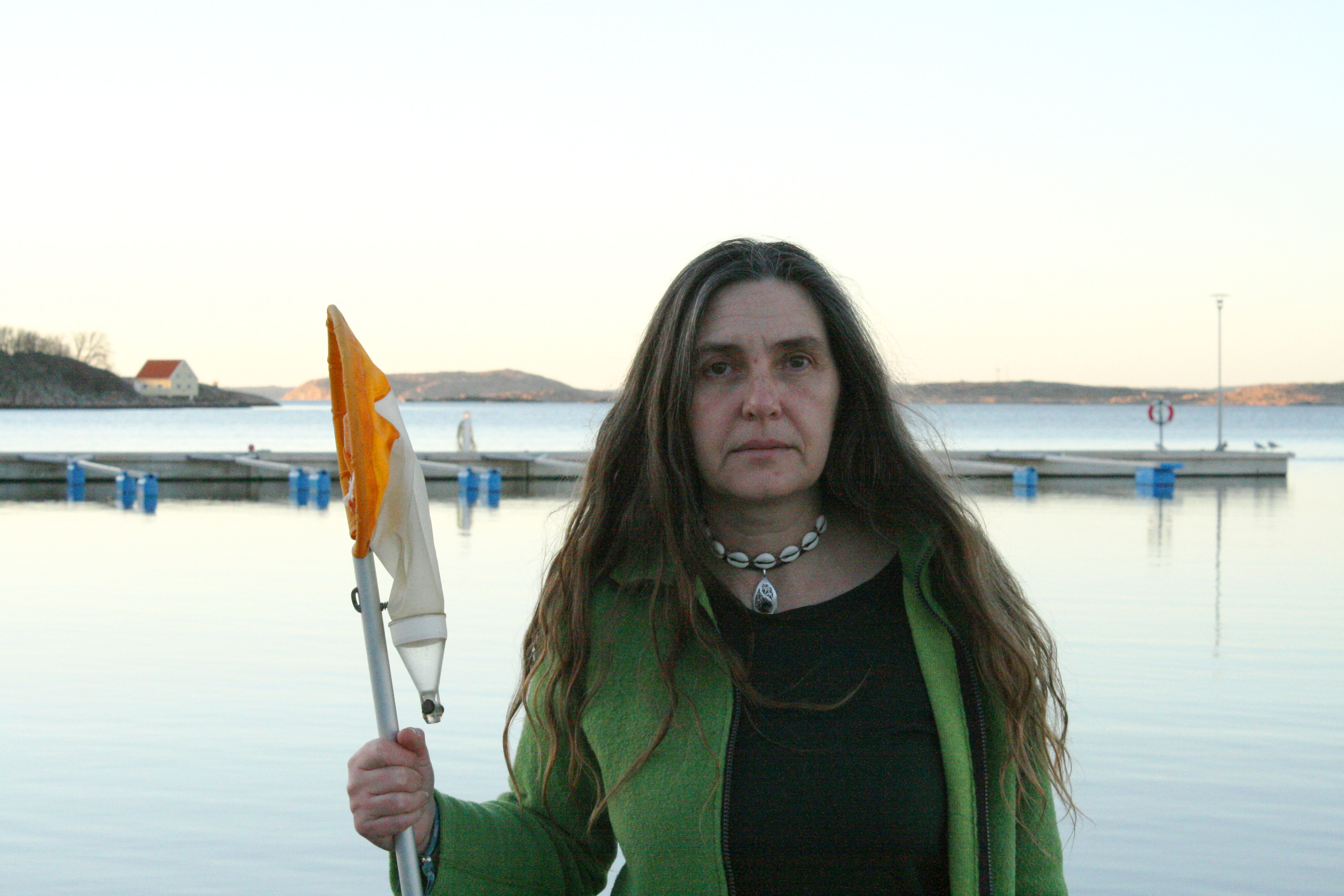 Cristina Bernárdez - provtagning av plankton vid skolans brygga. Gullmarsgymnasiet ligger vid havet så eleverna kan genomföra provtagningar där. Foto: Niklas Larsson.