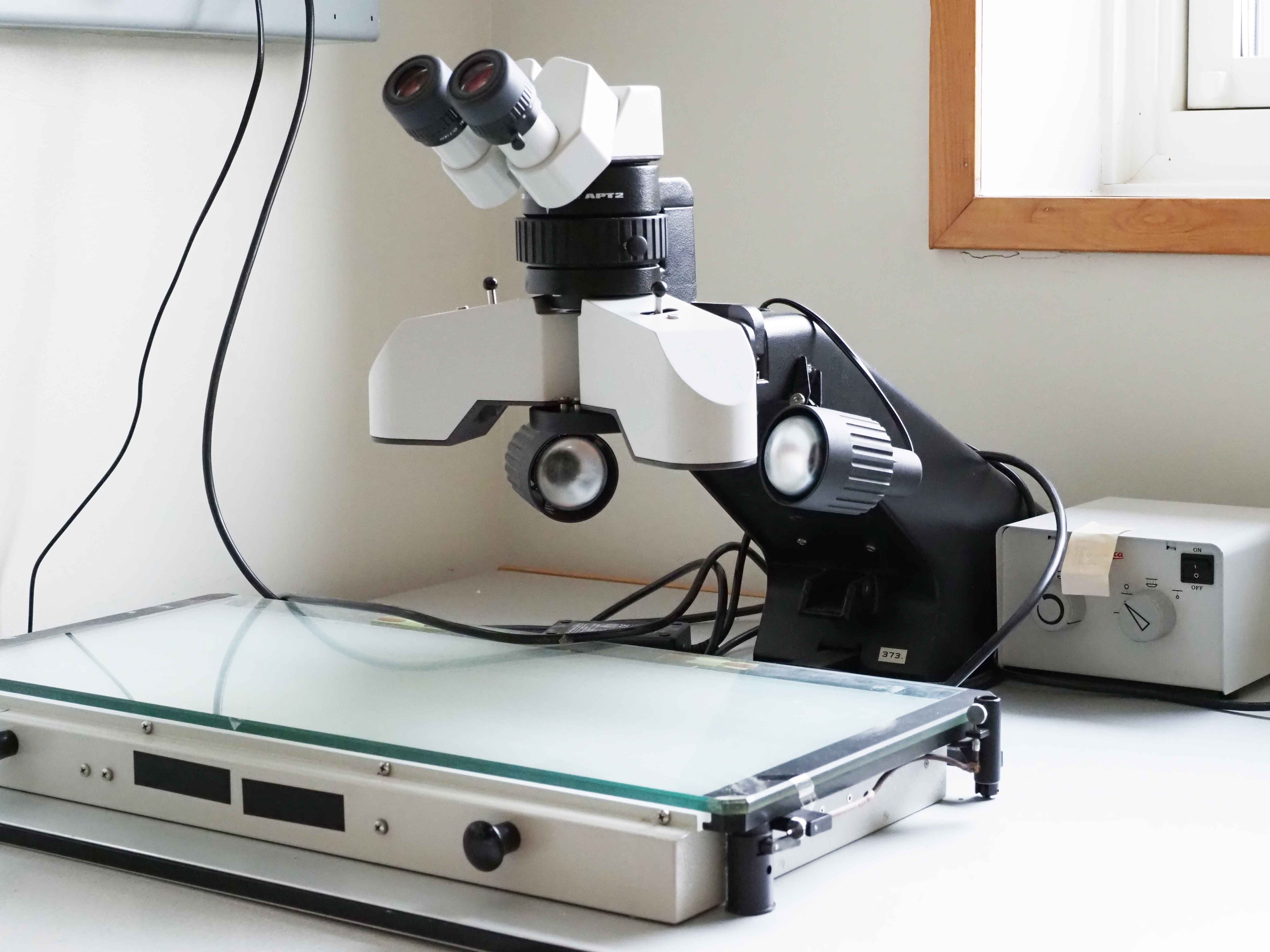 - Leica WILD Aviopret APT 2 Stereoscope med ljusbänk (10x/21B).